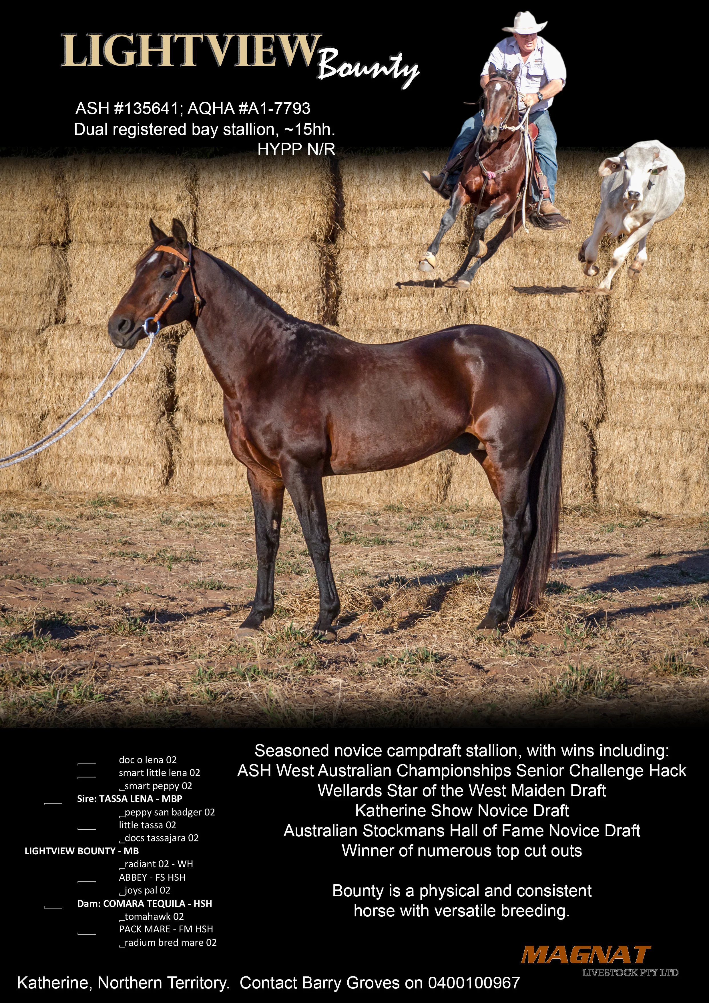 Services to the following NT located sires have been generously donated as winning prizes in addition to cash prize money. Thank you to Warren & Linda Clarris, Kim & Allison Barton, Jack & Kimberley Harries and Magnat Livestock for your donations.